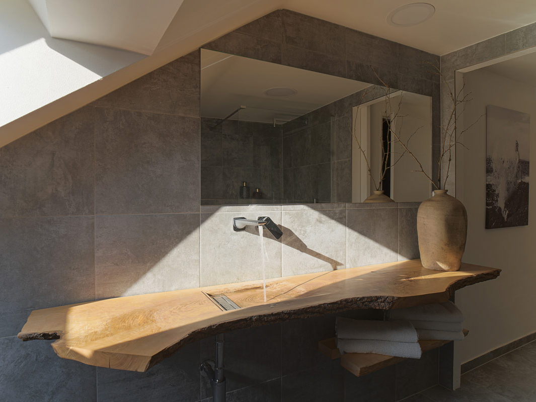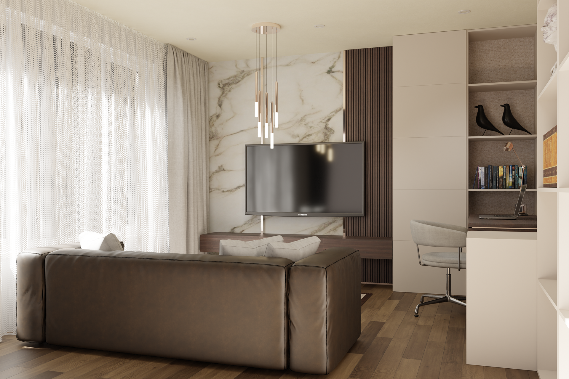 Cílem bylo vytvořit klidný, nadčasový prostor pro odpočinek, kde barvy, materiály i světlo podporují pocit rovnováhy a ticha.